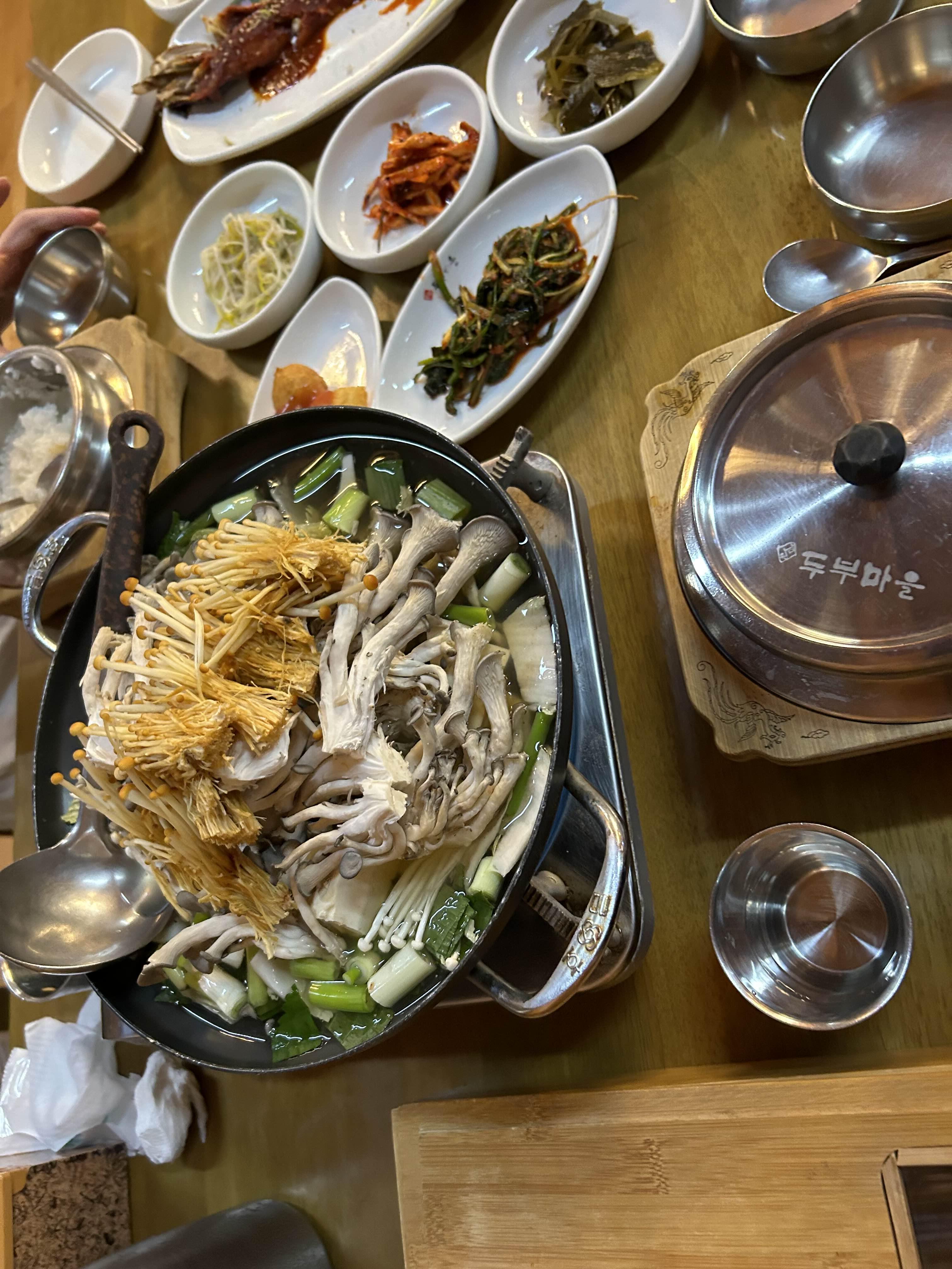 두부전골에는 지리산에서 난 버섯을 듬뿍 넣어줘서