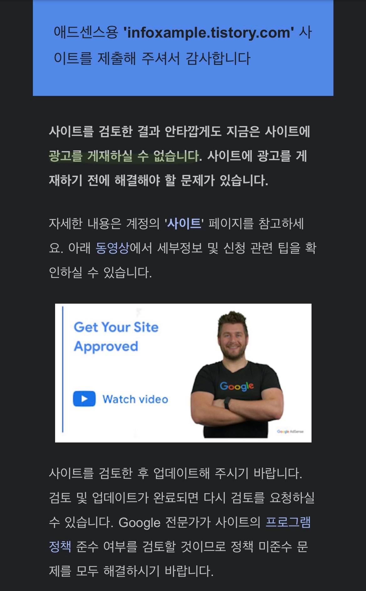 gmail 알림이 떠서 에드센스가 되는 줄만 알았다. 안 됐네 기분이 영 좋지 않았다.