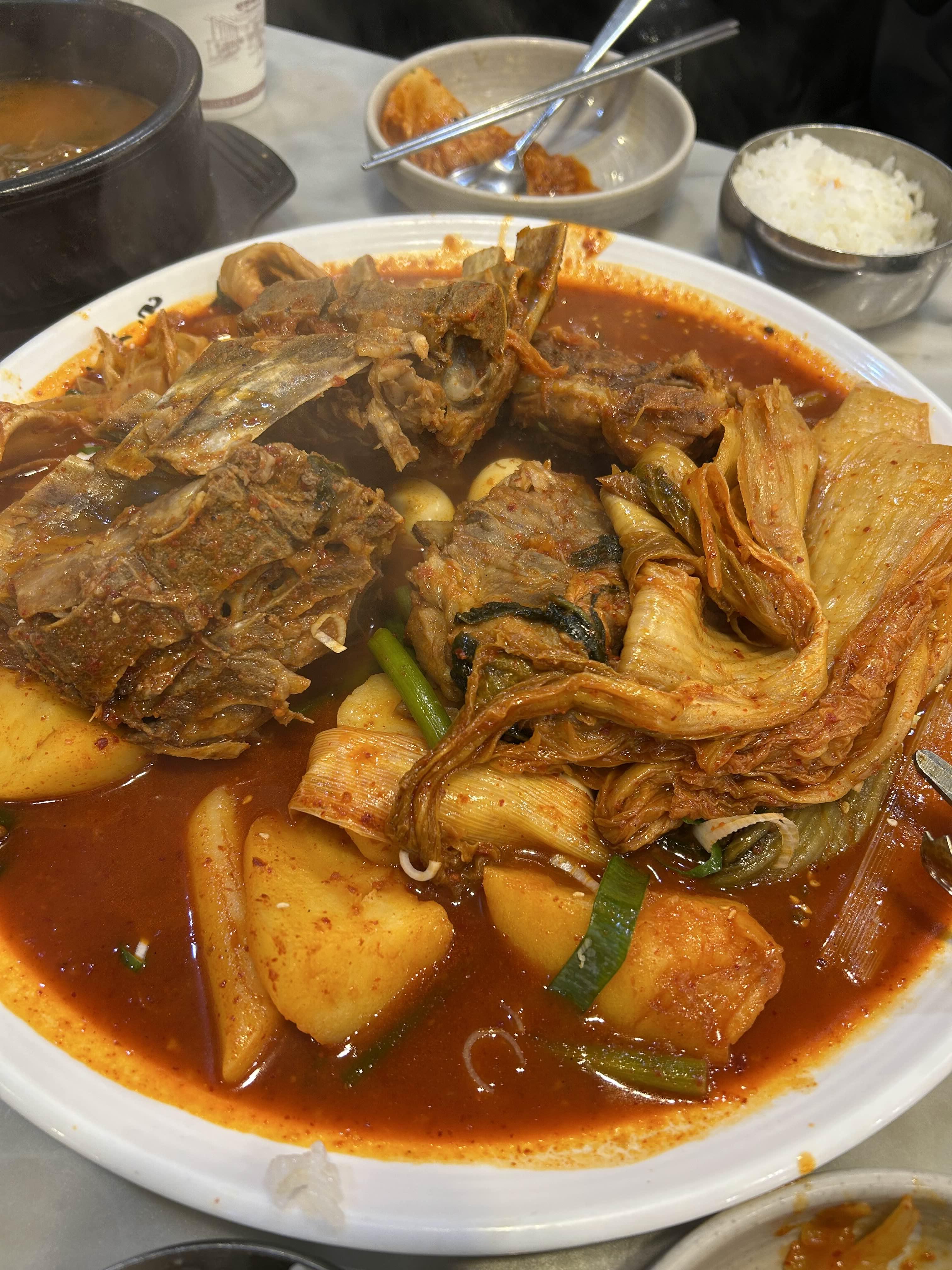 뼈찜을 시켰더니 감자탕이 나오네요.
