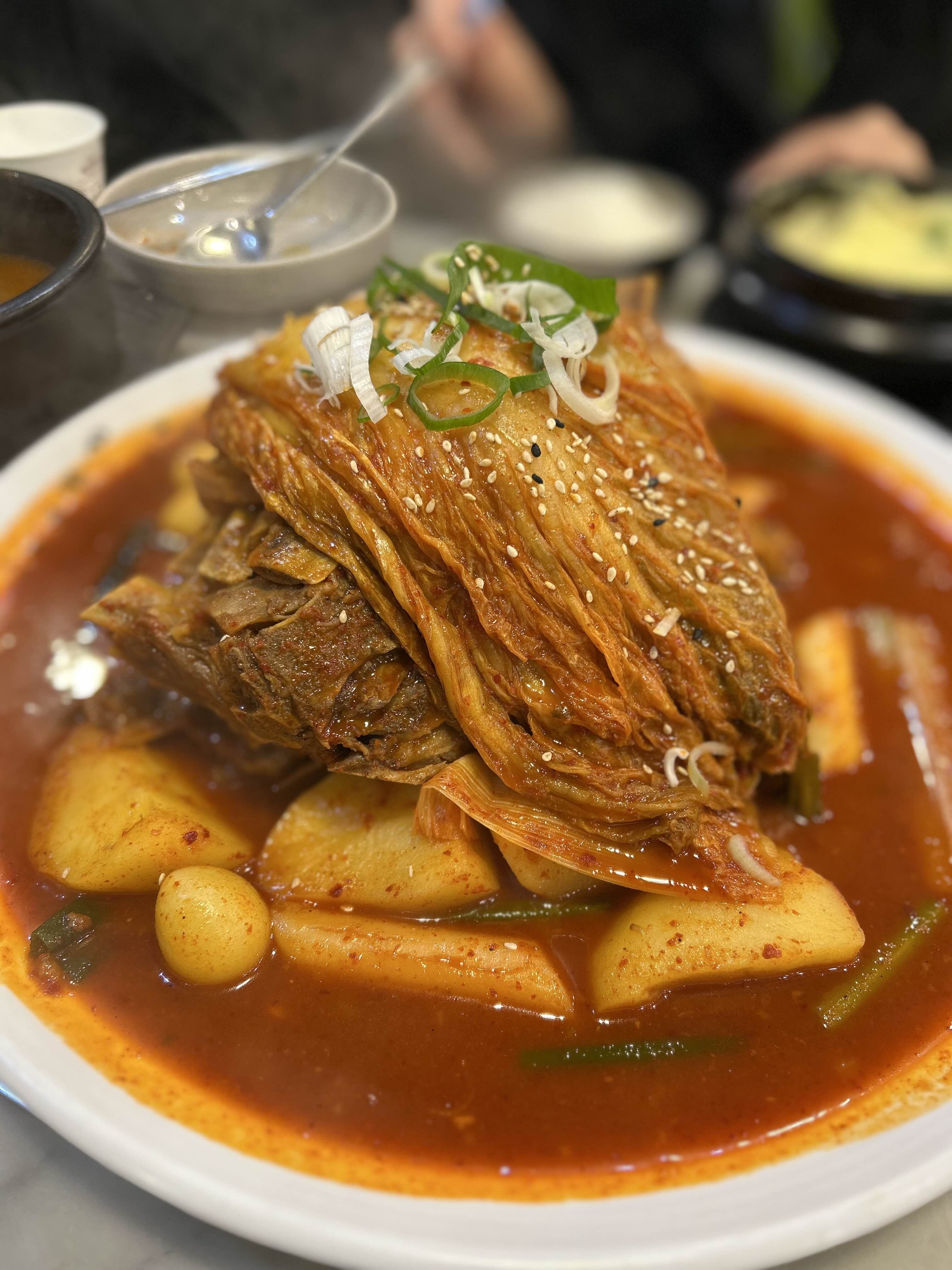 메인 메뉴인 묵은지 매운 뼈찜이에요.