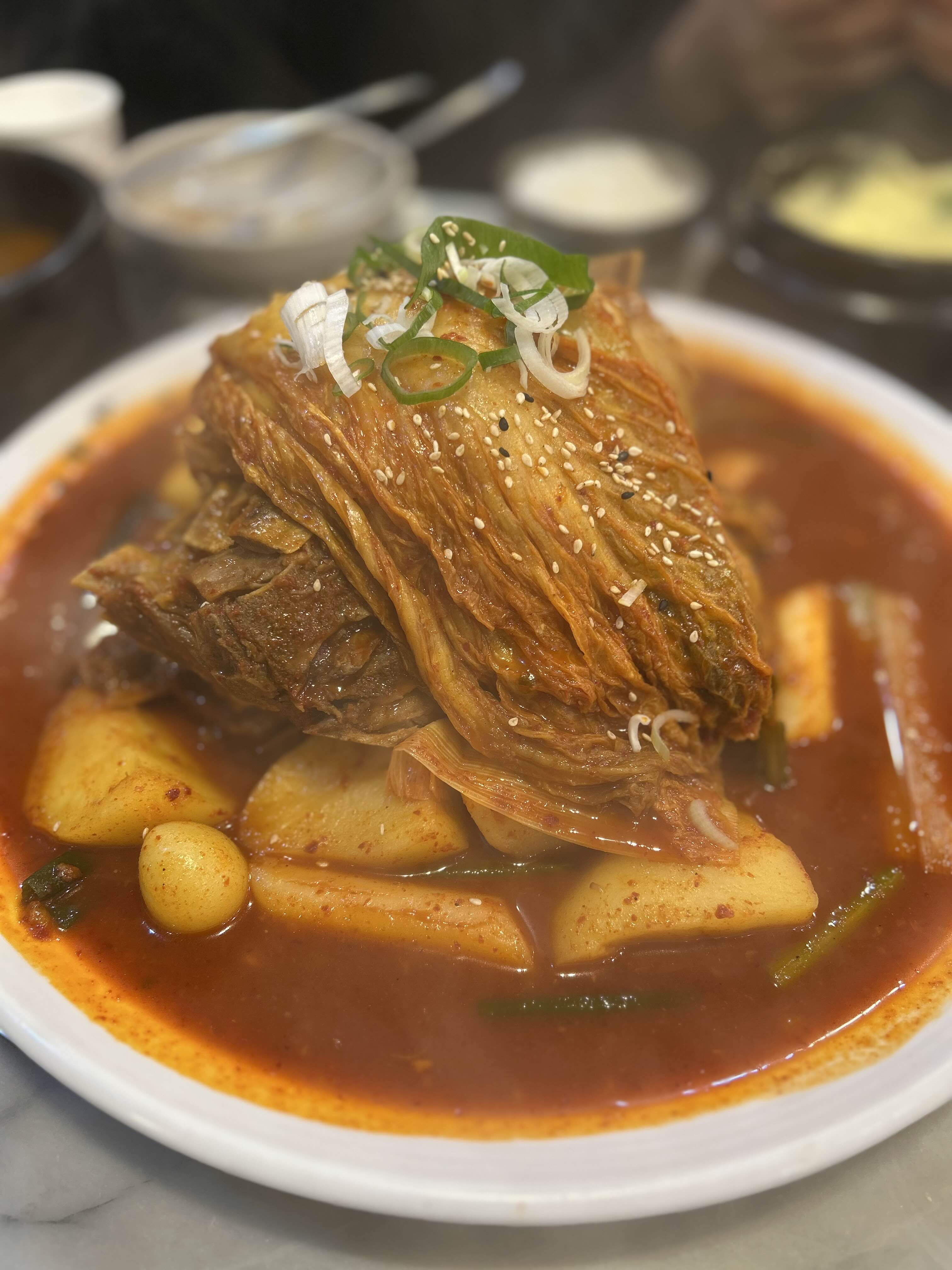 묵은지, 감자(뼈), 감자, 메추리알, 떡볶이떡이 들어간