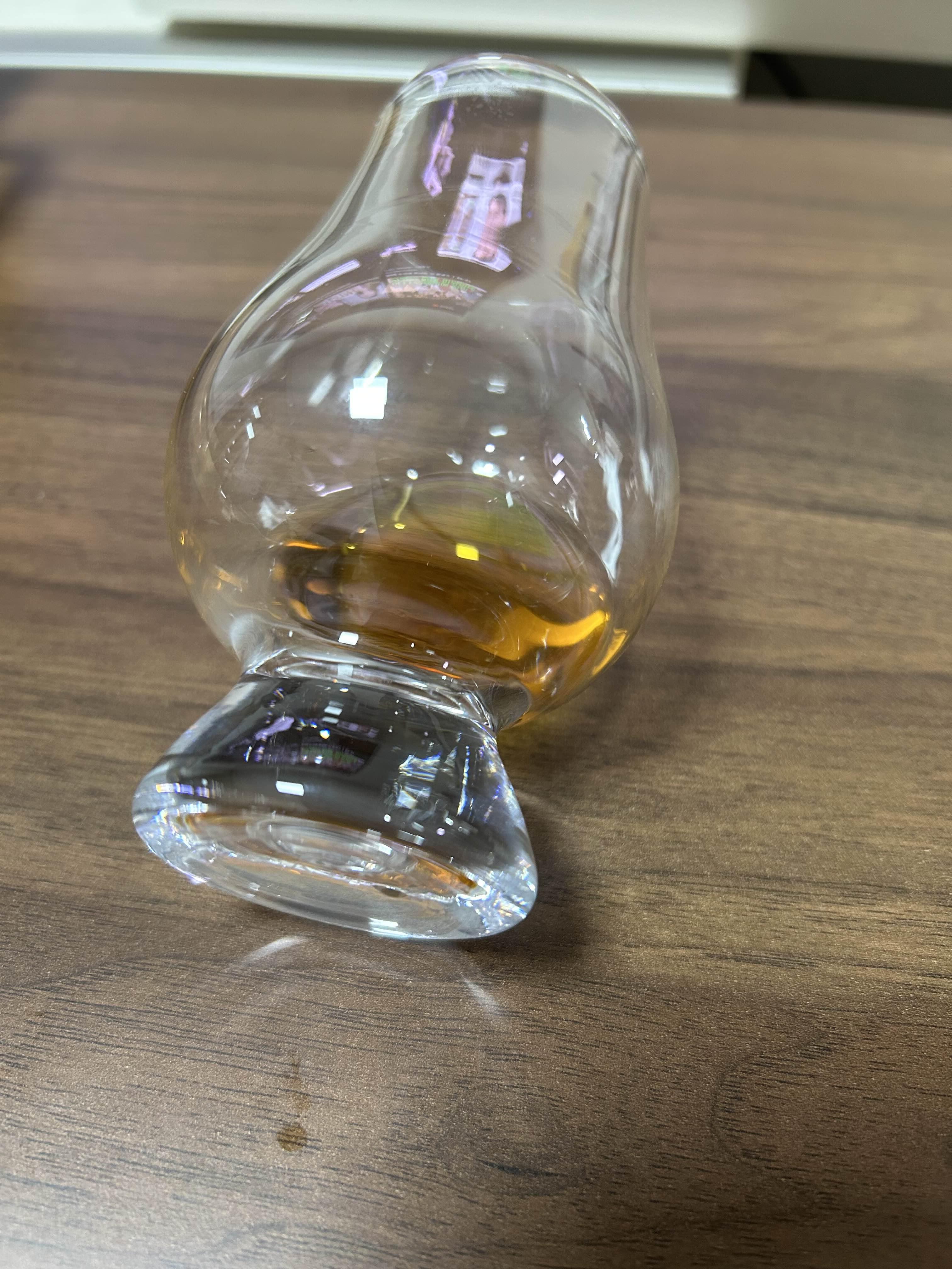 글렌캐런 잔은 어느 정도 위스키가 따라져 있을 때 잔이 넘어져도 술이 흐르지 않아요!