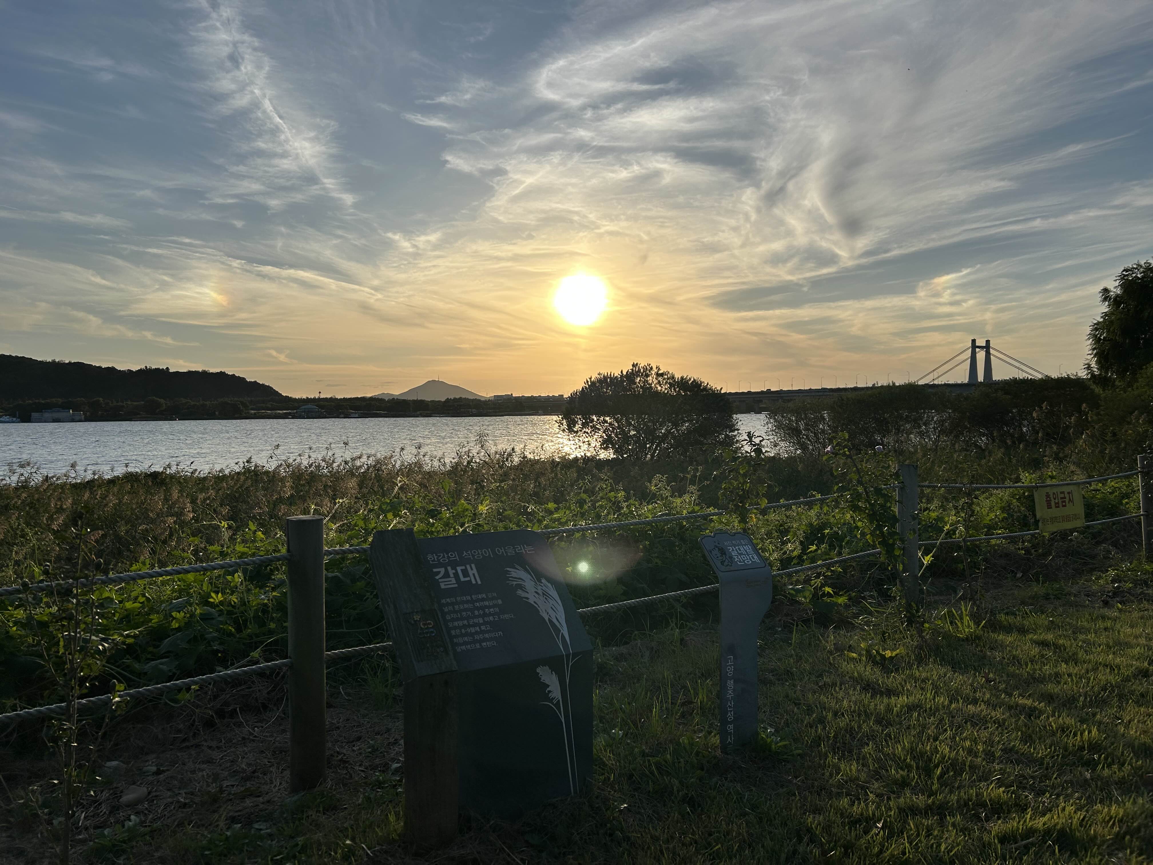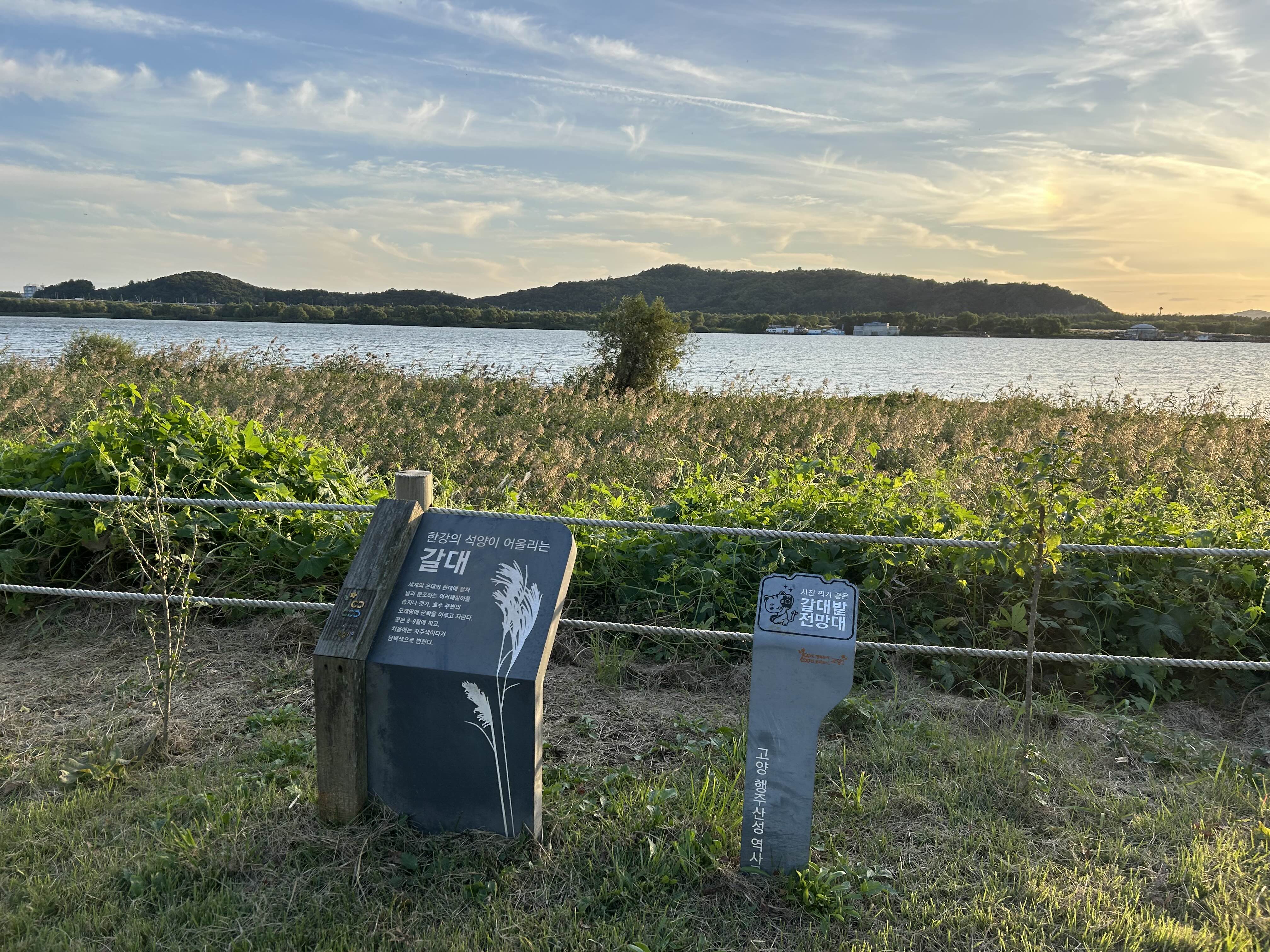 행주산성 역사공원의 산책로는 탁 트인 공간에서 자연을 만끽하며 걸을 수 있는 곳이에요. 나무들이 빽빽하진 않지만 곳곳에 듬성듬성 자리 잡고 있어, 시야가 트여 더욱 넓고 자유로운 느낌을 주죠. 길을 따라 걷다 보면 시원한 바람과 함께 주변 자연을 편안하게 감상할 수 있어요. 특히 석양이 지는 저녁 시간에는 하늘이 노을빛으로 물들어 로맨틱한 분위기가 연출된답니다.