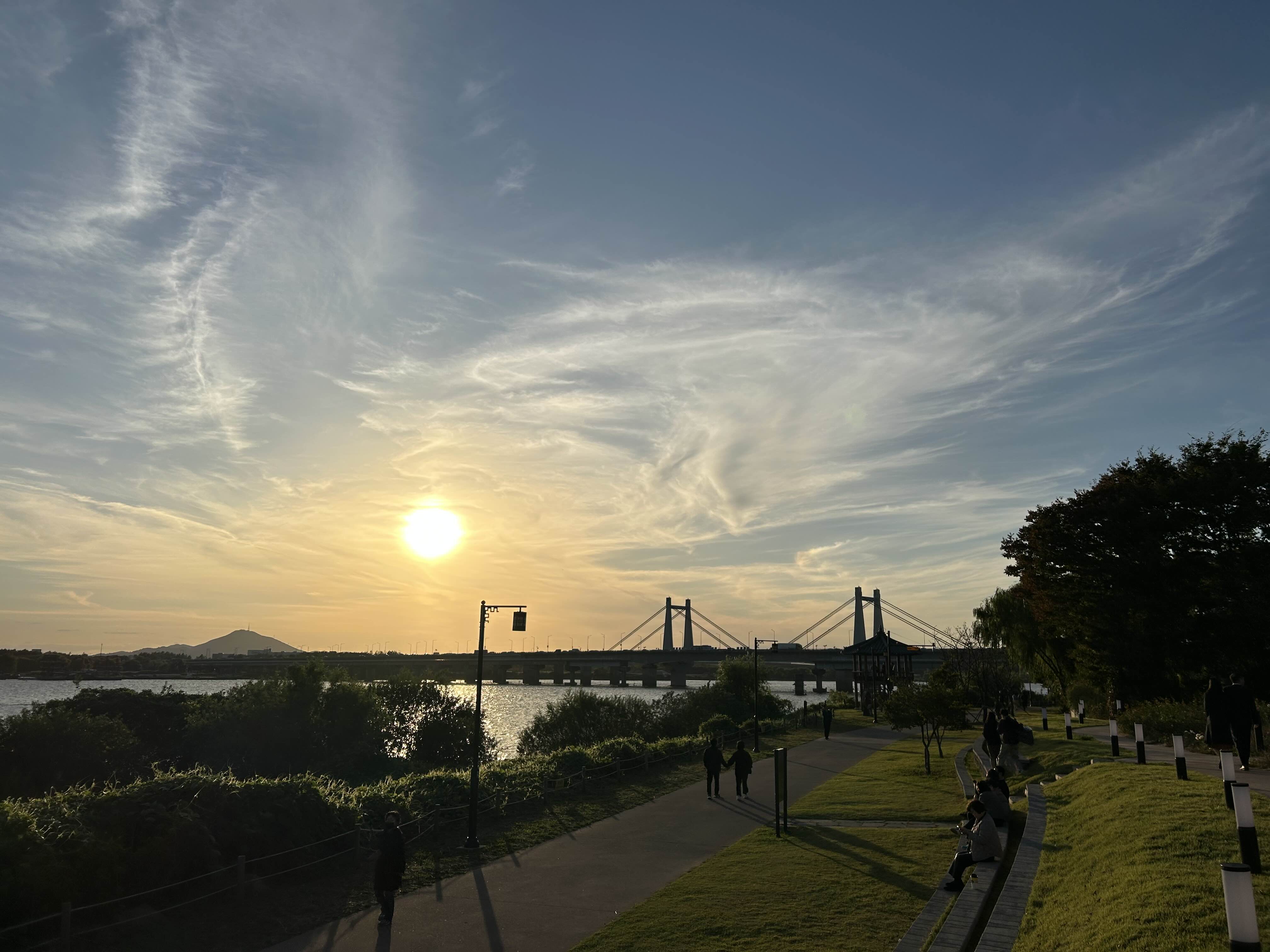 행주산성 역사공원은 석양과 단풍이 어우러지는 멋진 장면을 감상할 수 있는 명소예요. 산책로를 걷다 보면 해가 지면서 하늘이 노을로 물들고, 그 빛이 단풍나무와 잔디밭을 은은하게 비추면서 황금빛으로 변하는 풍경을 즐길 수 있어요. 단풍과 석양이 어우러지는 이 순간은 마치 영화 속 한 장면처럼 아름답고, 그 모습을 배경으로 사진을 남기기에도 정말 좋아요.