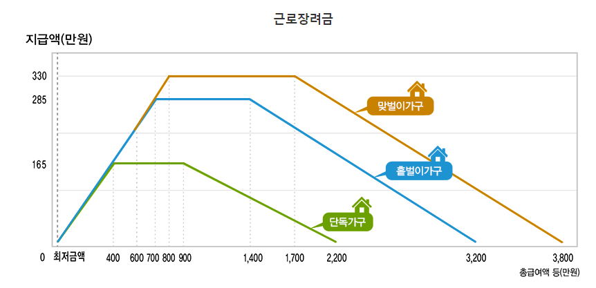 - 맞벌이 가구: 부부가 모두 근로 소득이 있는 가구 / 3,800만 원 미만