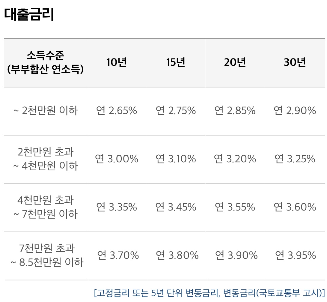 - 대출 한도: 최대 4억 원까지 (신혼가구 및 다자녀 가구 기준)