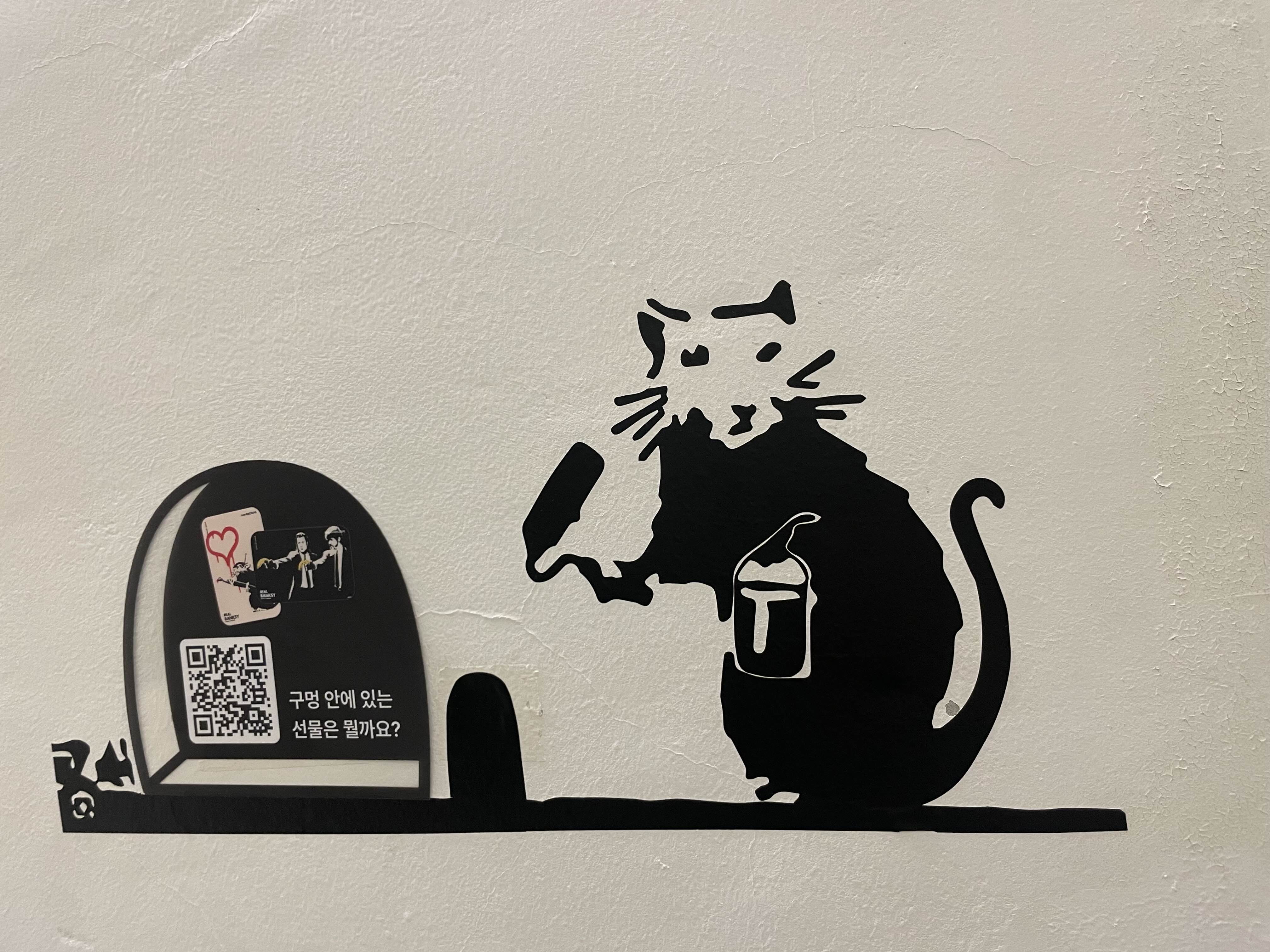 리얼 뱅크시 전시회는 서울 도심 한가운데에서 열리고 있었어요. 기간은 2024년 5월 10일부터 10월 00일까지로, 생각보다 꽤 길게 진행되더라고요. 뱅크시의 전시회를 보려면 지하4층까지 걸어서 내려갔어야 했어요, 뱅크시가 즐겨 그렸던 '쥐'(징그럽지 않아요)들을 보면서 내려갔답니다. 입장 하고 나서는 유명한 작품들이 한눈에 들어와서 정말 감동적이었어요. 특히 그가 표현한 사회적 메시지들이 생생하게 느껴졌어요.
