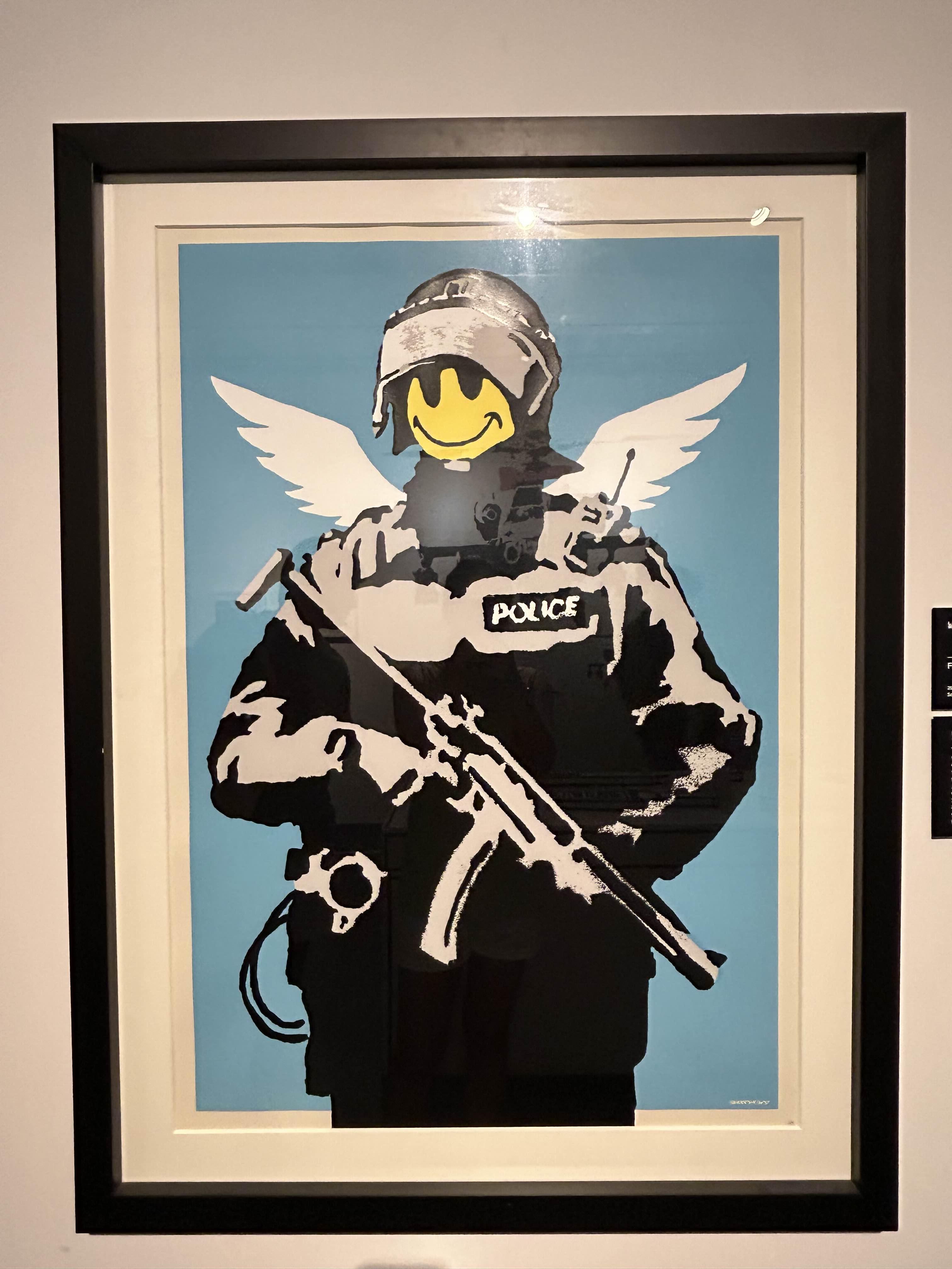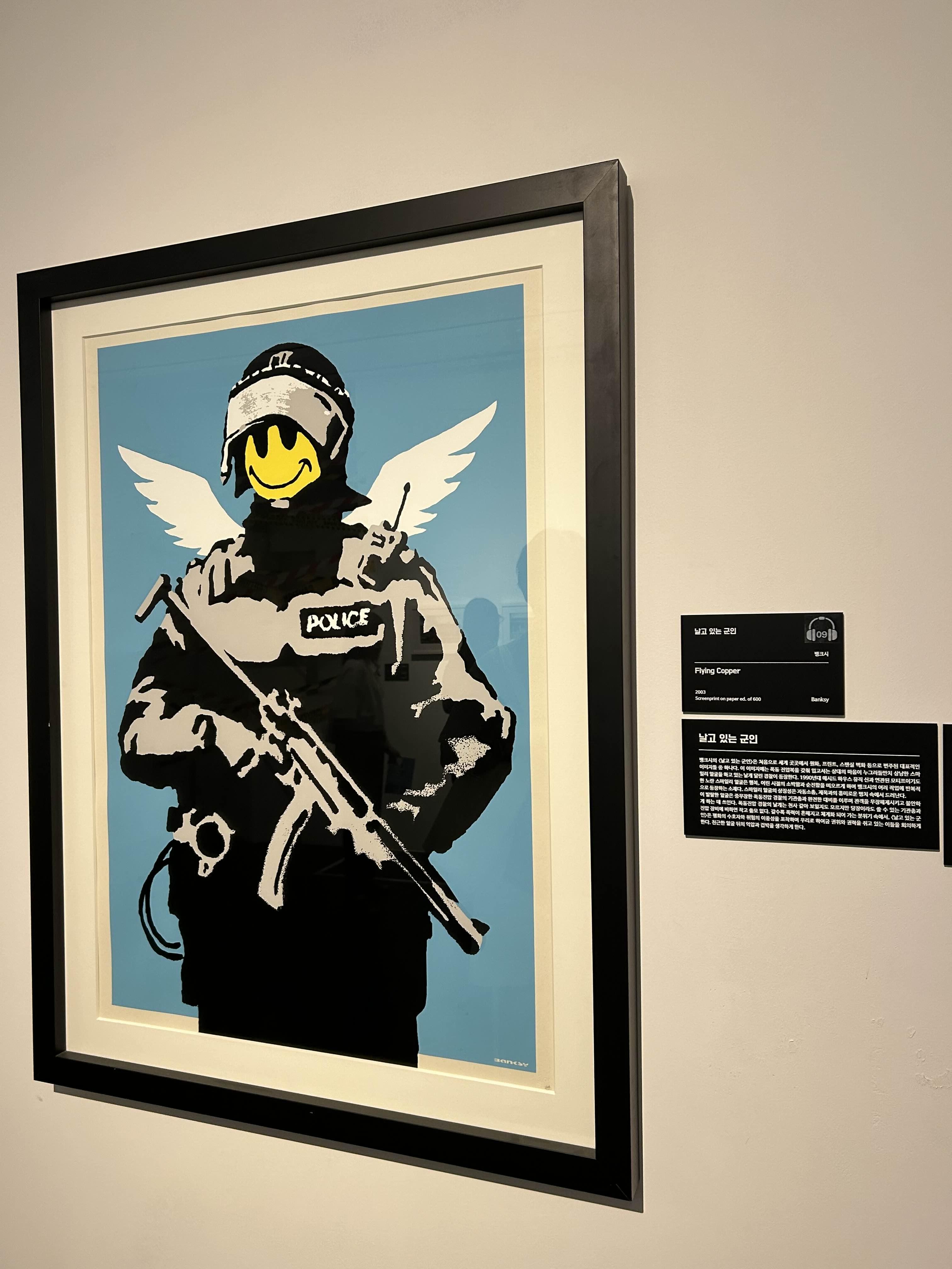 뱅크시의 작품을 실제로 보니 그의 예술 세계가 더 잘 이해되었어요. 그의 작품은 단순히 '멋지다'를 넘어서, 우리 사회의 문제들을 꼬집고, 사람들에게 질문을 던지는 힘이 있더라고요. 특히 스트리트 아트라는 형식을 통해 그의 메시지가 우리 일상 속에서 더 강렬하게 다가오는 것 같았어요. 저는 특히나 스마일 얼굴을 한 경찰에 아주 꽂혀서 꽤나 오랫동안 작품을 감상했습니다.